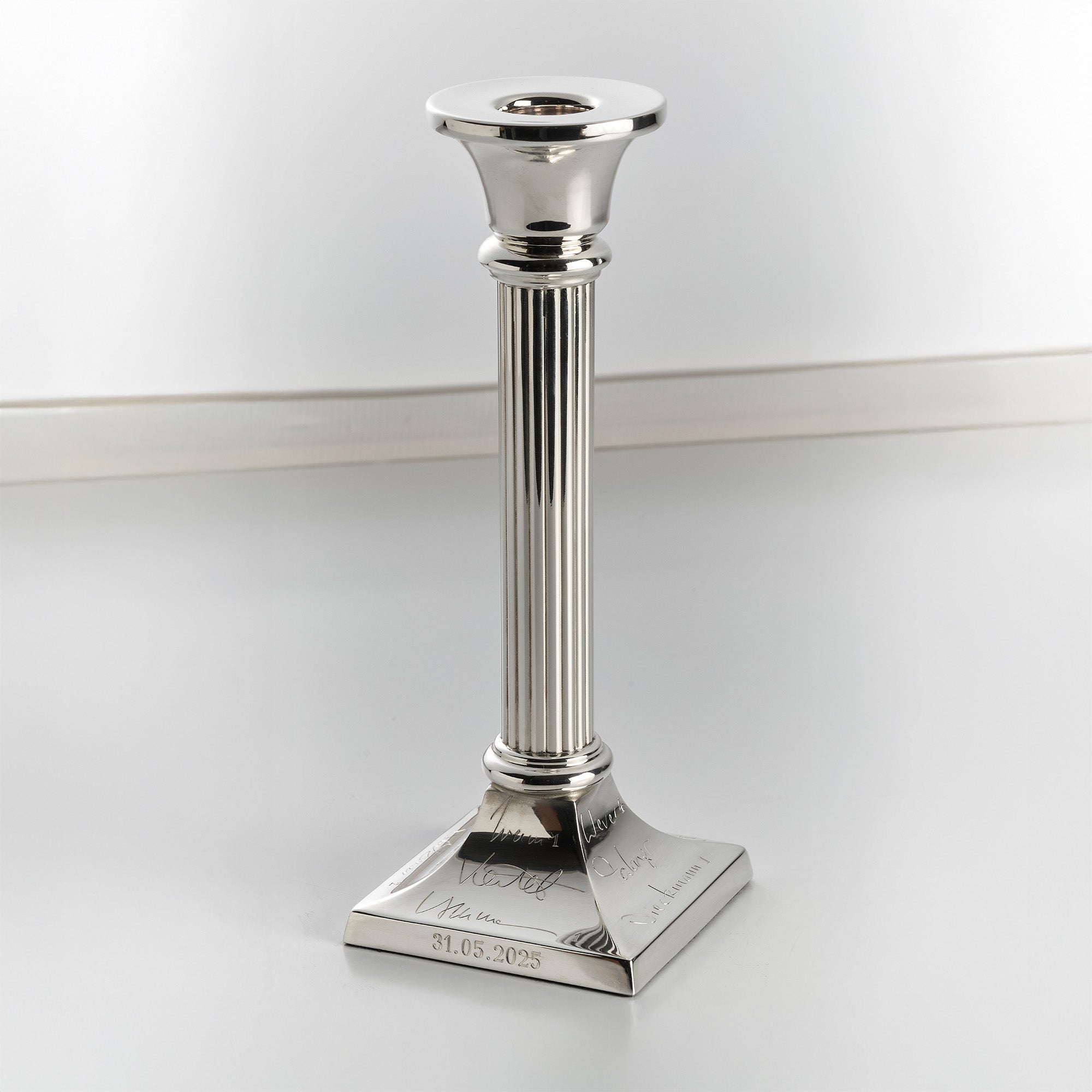 Im Detail: Silberteller mit Gravur & Kerzenleuchter mit Gravur